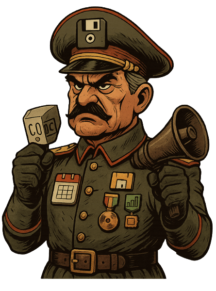 guardian of outdated systems and broken processes. Clutching COBOL manuals and floppy disks