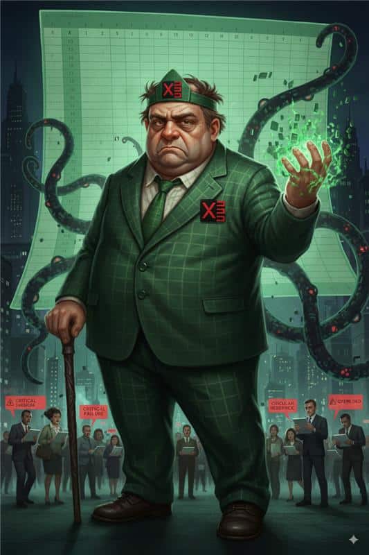 Born from the frustration of endless, unwieldy spreadsheets, The Spreadsheet Scourge emerged as a formidable foe to modern corporate giants. He once toiled in the depths of data, witnessing the chaos and inefficiency wrought by over-reliance on Excel for critical business operations. Consumed by a burning desire for revenge against the very systems that tormented him, he now dedicates his twisted genius to causing massive spreadsheet crashes, data corruption, and system overloads, bringing entire companies to their knees. His ultimate goal: to liberate the business world from the tyranny of the “Excel-archy,” no matter the cost.