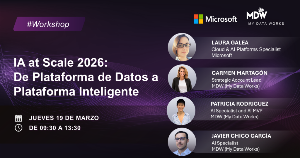 Durante el workshop trabajaremos de forma muy concreta cómo pasar de una data platform fragmentada a una plataforma inteligente donde datos, analítica e IA estén integrados bajo un mismo marco de arquitectura y gobierno.